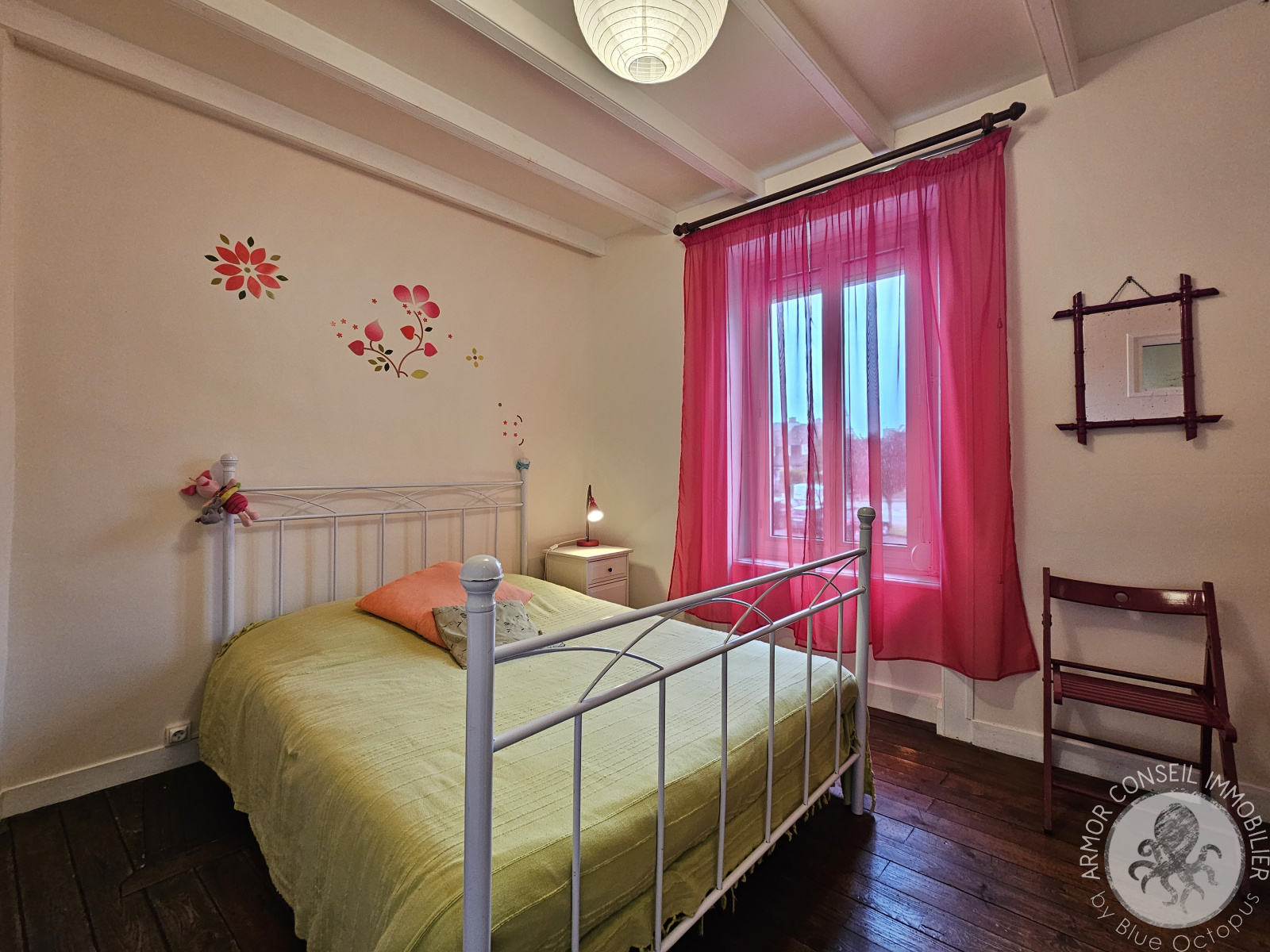 L'étage accueille trois chambres lumineuses, une salle d’eau avec WC, idéale pour une vie de famille.