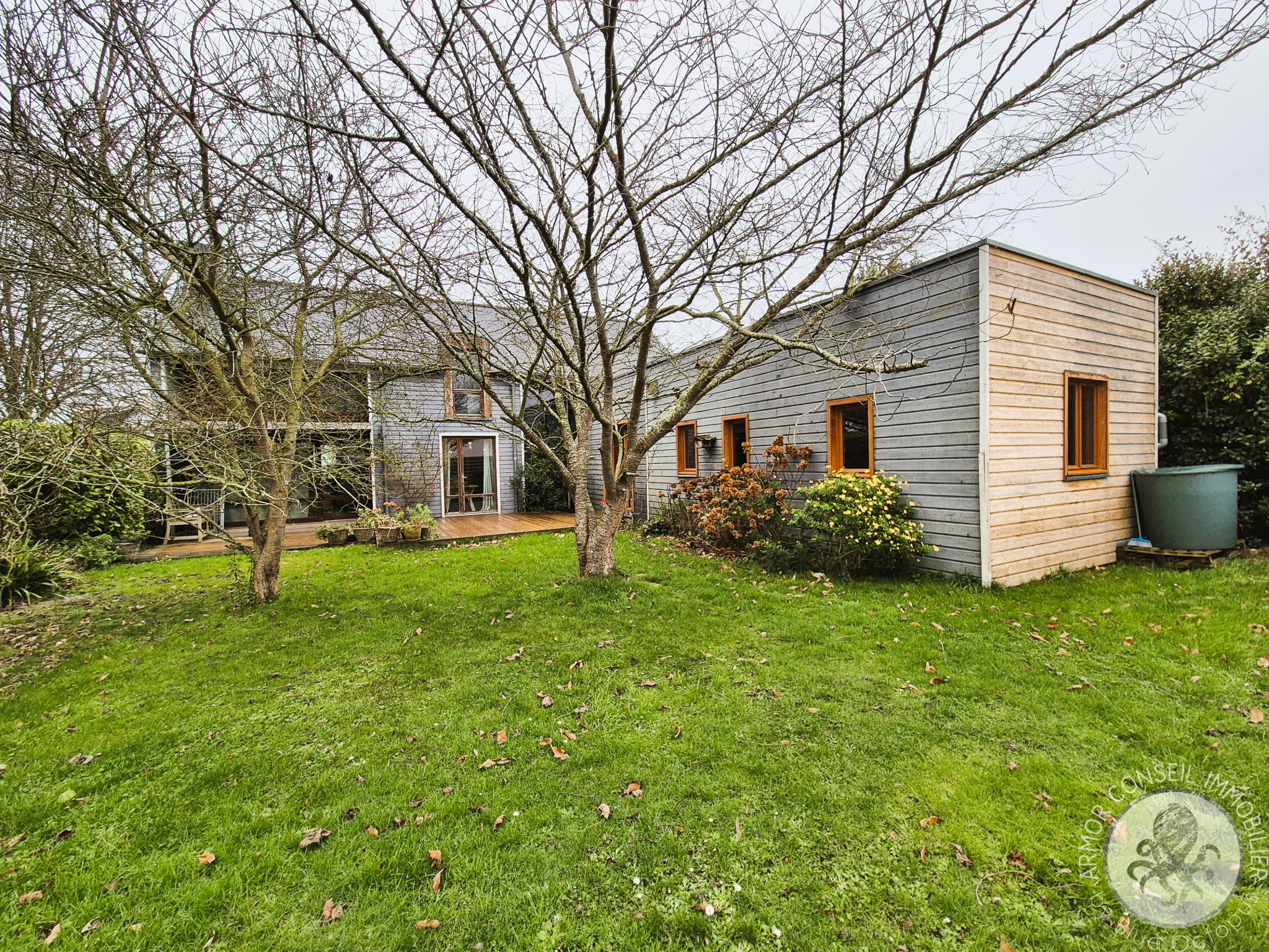 Une grande terrasse exposée sud-ouest ainsi qu’un abri de jardin viennent compléter ce bien.
