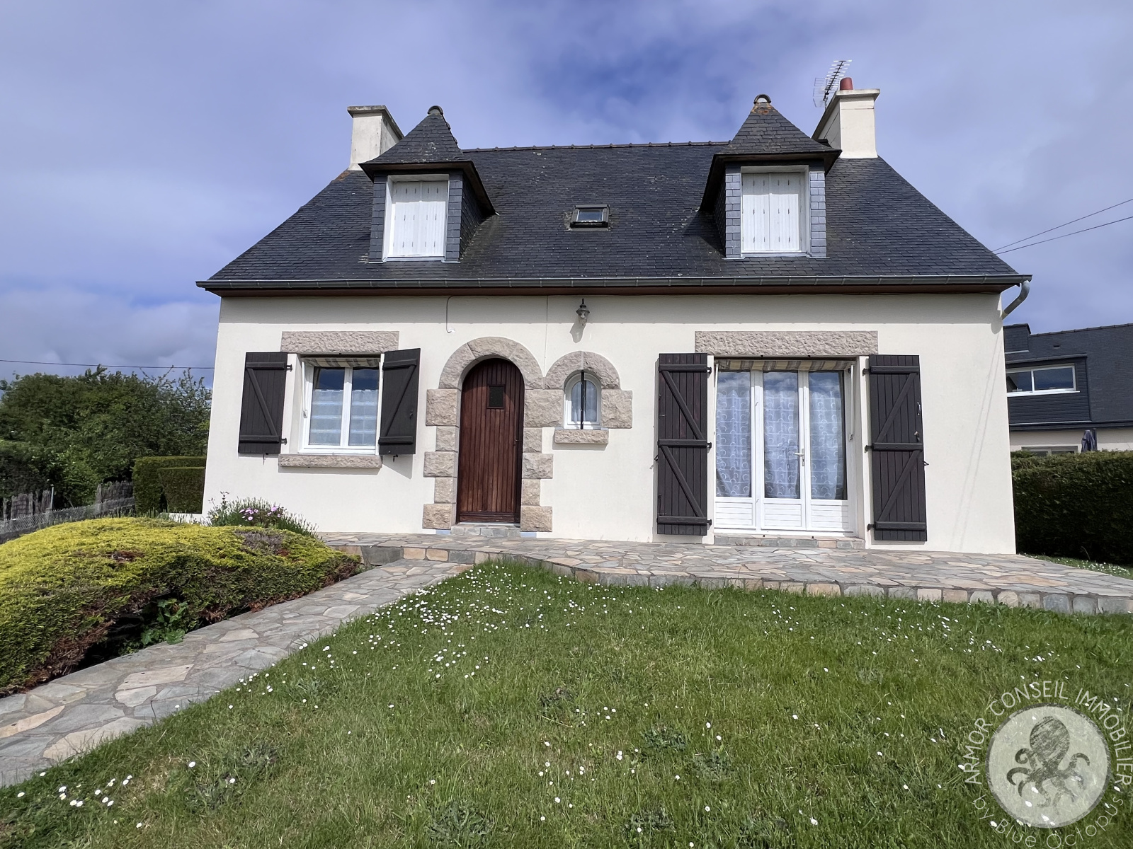 Pléboulle (22550)EXLUSIVITE Armor Conseil Immobilier : Patricia DIBONNET - Située dans un petit hameau, à 4 minutes du centre de Matignon, et à 7 minutes des plages, venez découvrir cette jolie maison d'une surface habitable de 109 m². Elle est composée d'une entrée, cuisine aménagée et équipée, quatre chambres dont une au rez de chaussée, deux salles d'eaux, deux wc, sous-sol total avec garage de 32 m². Le tout sur un terrain d'environ 1 200 m² avec une partie verger.