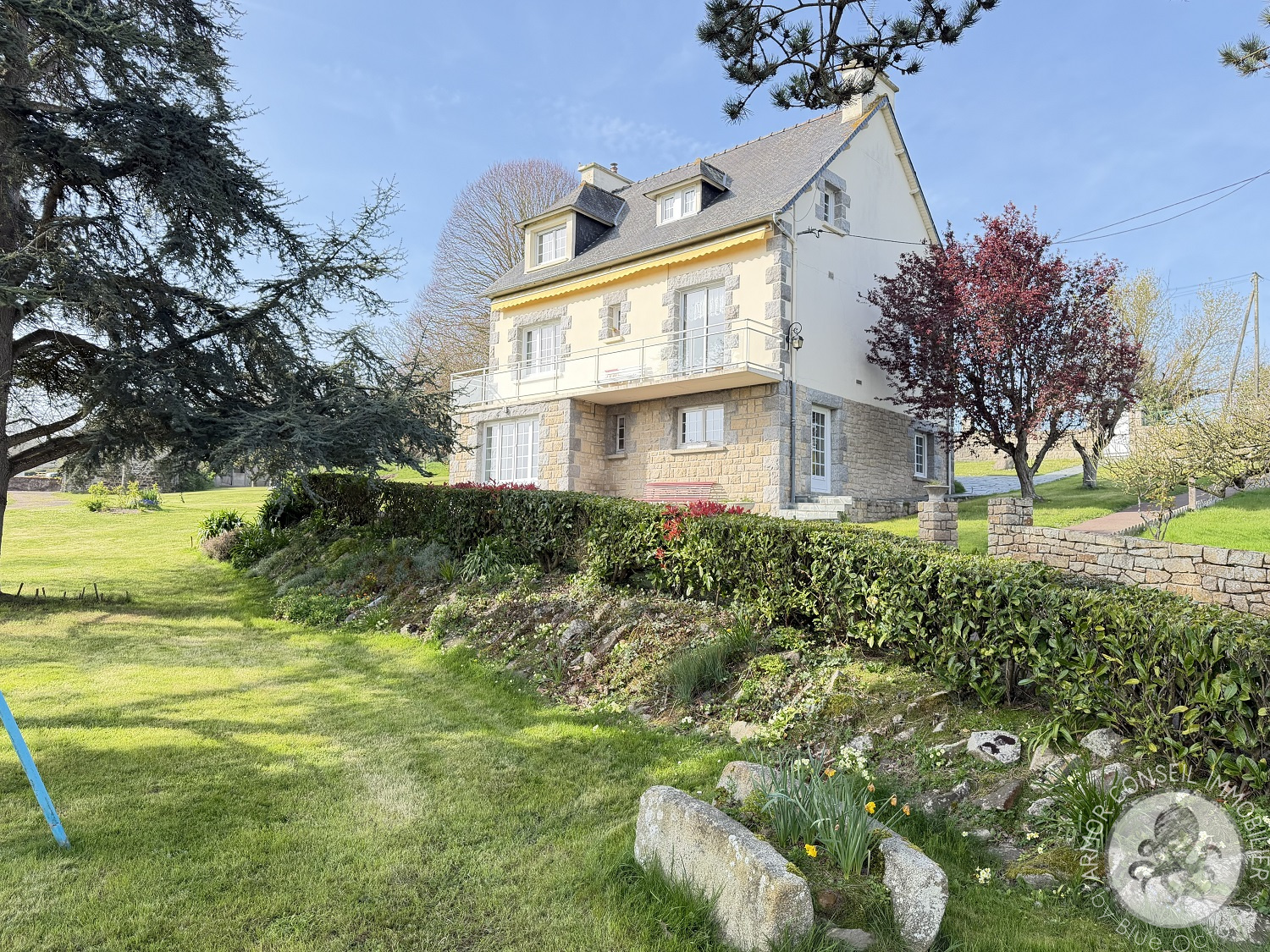 Pléboulle (22550)ARMOR CONSEIL IMMOBILIER Exclusivité : Avec vue sur la baie, située à 7 minutes des plages, 4 minutes de tous commerces à Matignon, et à proximité des chemins de randonnée, Patricia DIBONNET vous propose de venir découvrir cette jolie maison d'une belle surface habitable de 183 m². Elle comprend une entrée, séjour avec cheminée, salon, cuisine aménagée et équipée, vestiaires, quatre chambres dont une au rez-de-chaussée, bureau, salle de bains, deux wc. Un appartement en rez-de-jardin offrant une cuisine, salon, une chambre et salle d'eau est idéal pour recevoir famille ou amis.