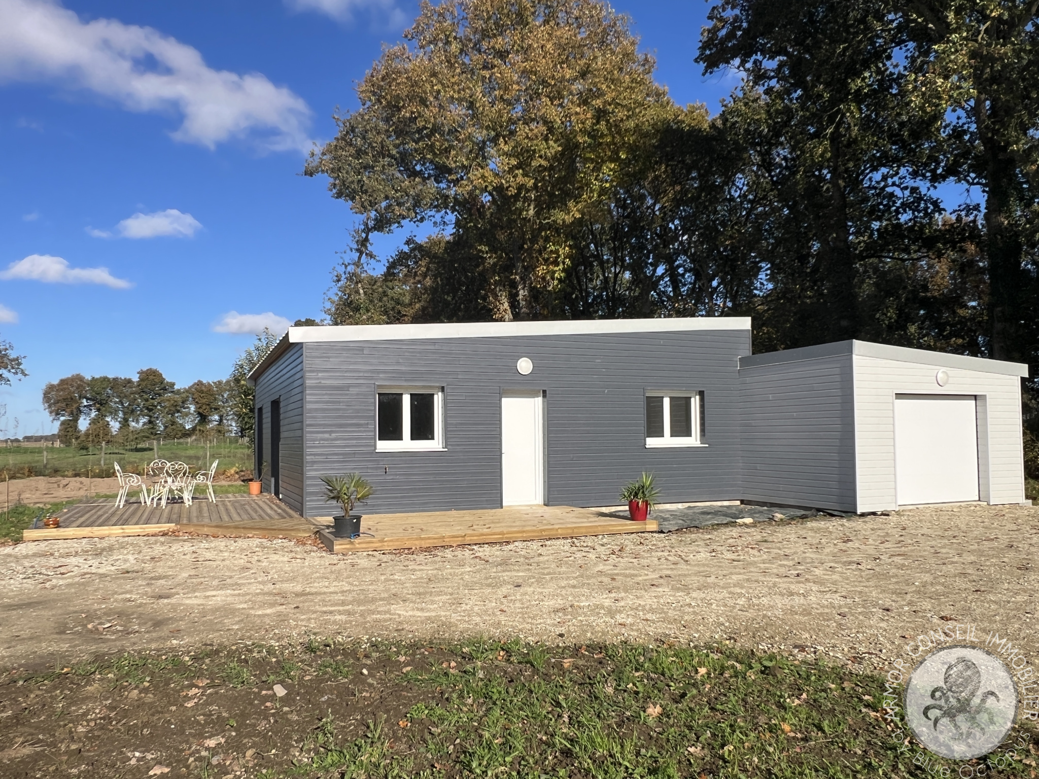 Un garage attenant d'environ 30 m² avec son espace buanderie ainsi qu'une terrasse en bois complètent le bien sur une parcelle de 538 m².