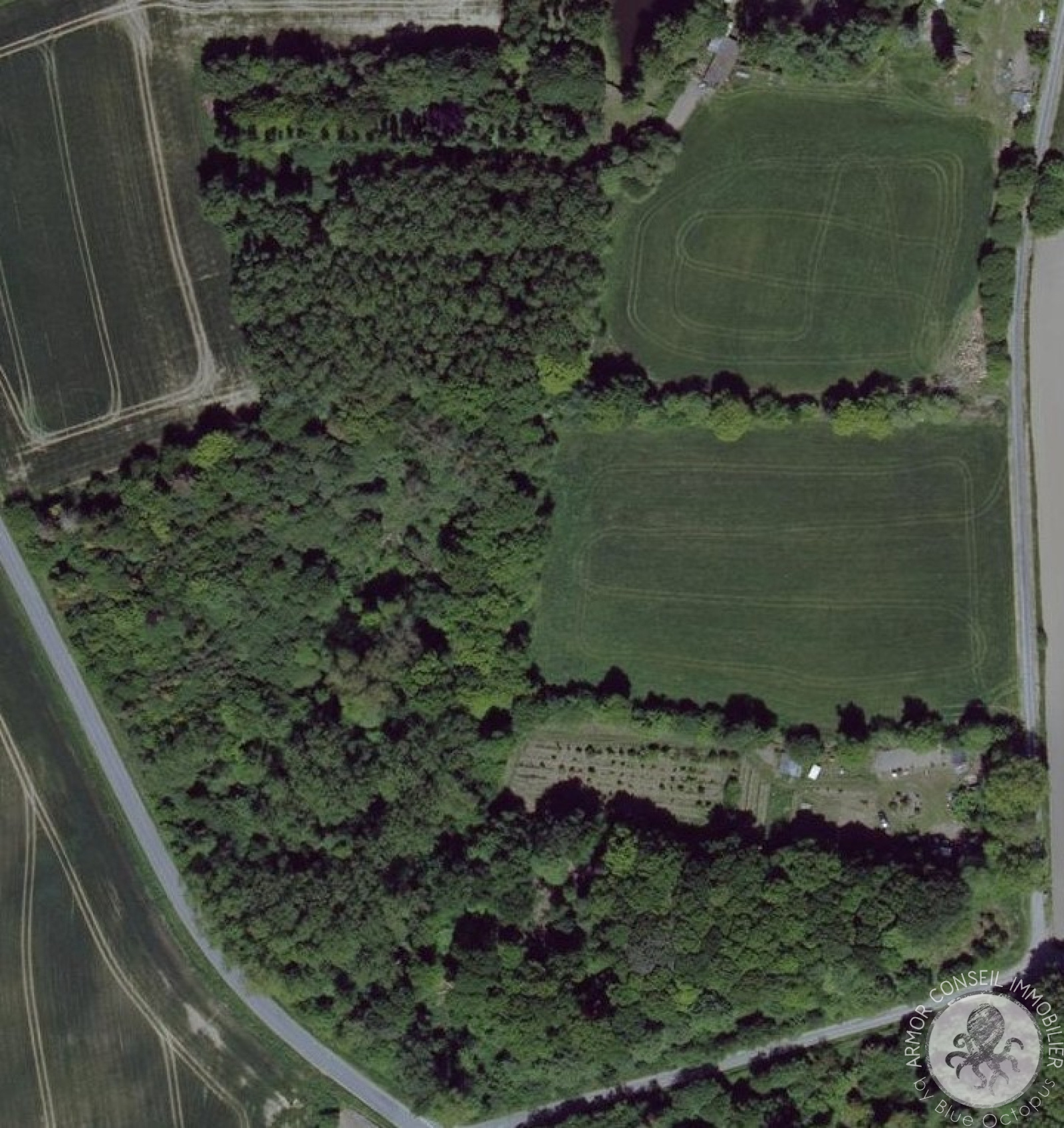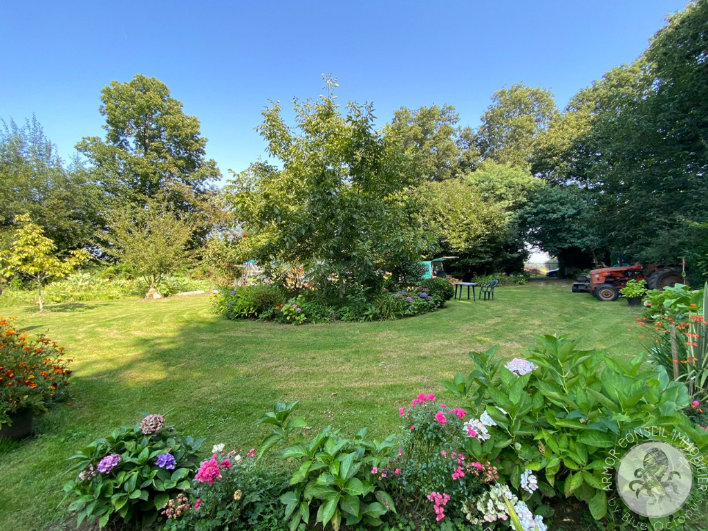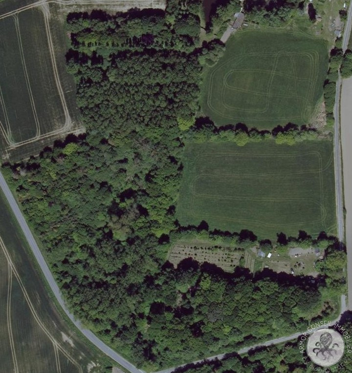 Entre Languenan et Créhen, terrain non constructible d'une contenance de 14 880 m² comprenant une partie aménagée avec hangars, potager et verger et une très grande partie boisée. Calme et tranquillité absolue !