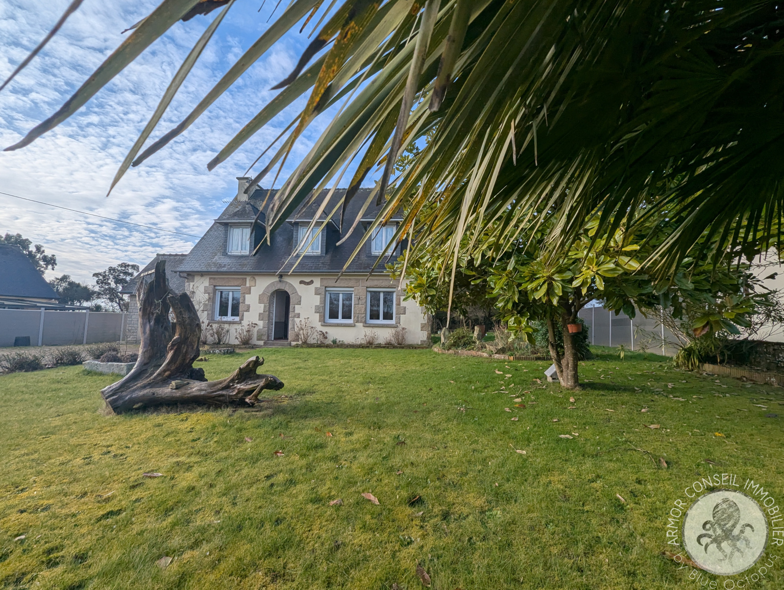 Saint-Cast-le-Guildo (22380)ARMOR CONSEIL IMMOBILIER : Vanessa SAMSON vous fera découvrir cette belle traditionnelle des années 70 située deux pas des plages. Une entrée dessert une cuisine aménagée et équipée, un salon séjour traversant ainsi qu'une salle d'eau et une chambre en rez-de-chaussée. A l'étage, elle offre 3 chambres, un débarras et une salle d'eau avec WC. Garage communiquant avec grenier de stockage au-dessus. Un atelier et un puits complètent la maison sur une parcelle arborée de 1000 m².