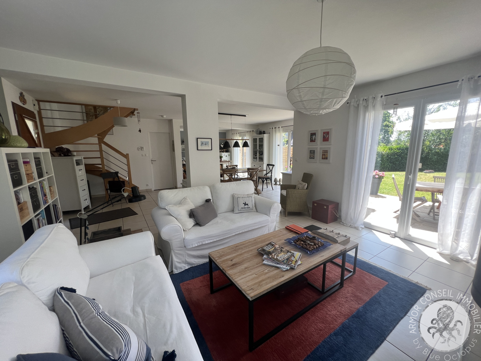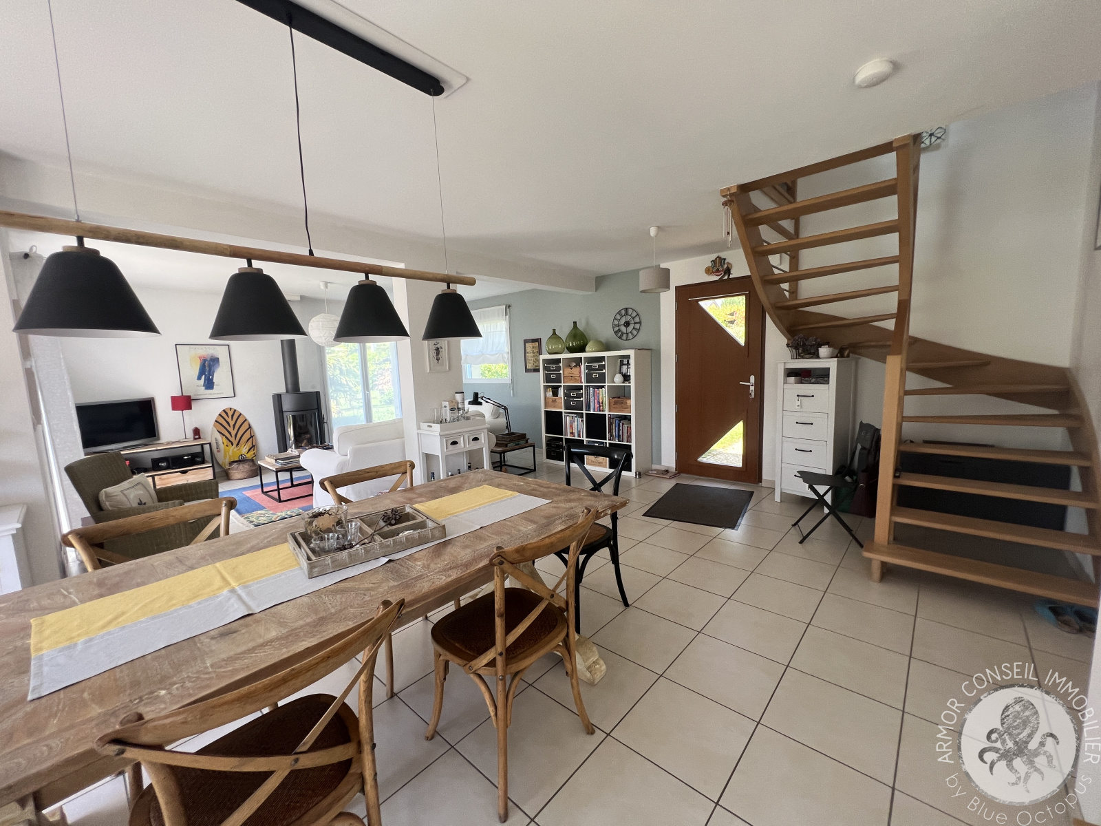 Bourseul (22130)ARMOR CONSEIL IMMOBILIER : Jennifer COLIN vous propose en EXCLUSIVITE de venir visiter cette maison comtemporaine construite en 2006, spacieuse et lumineuse, elle comprend une pièce de vie avec cuisine ouverte aménagée et équipée, un vestiaire, une buanderie et un garage. A l'étage une mezzanine dessert 3 chambres et une salle de bains. L'ensemble sur un terrain clos et arboré avec terrasse et abri de jardin. Vous pouvez consulter les risques auquels ce bien est exposé sur le site www.georisques.gouv.fr