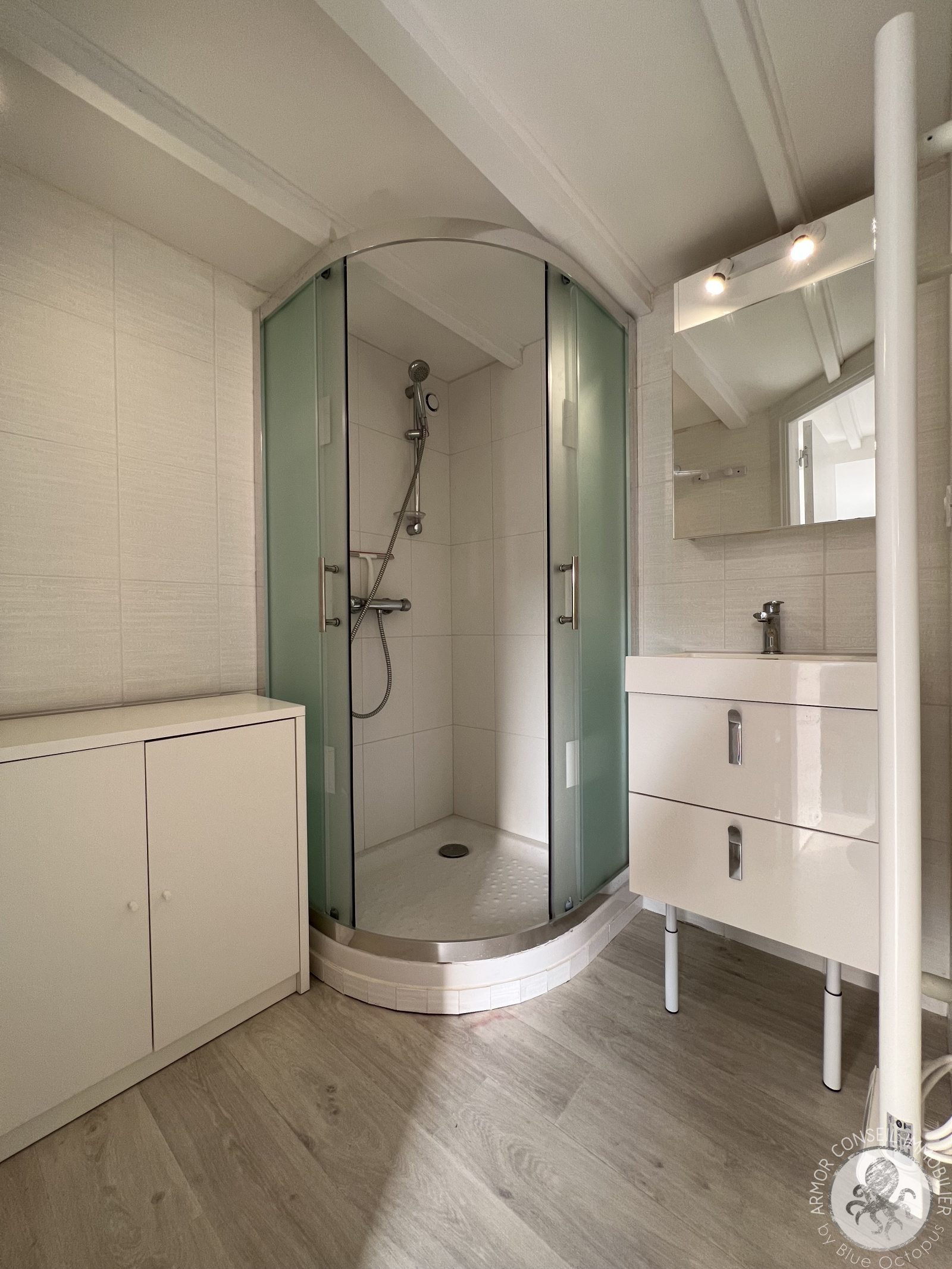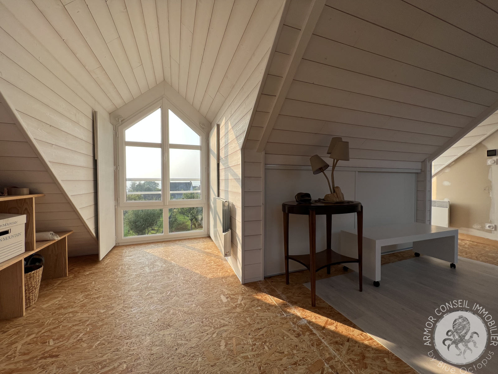 Au deuxième, une salle d'eau avec wc et une grenier aménagé avec une jolie vue mer.