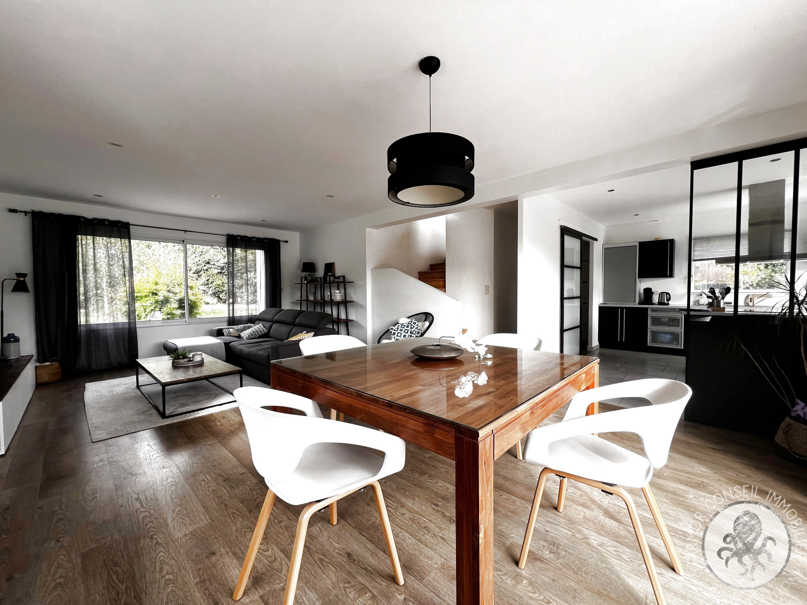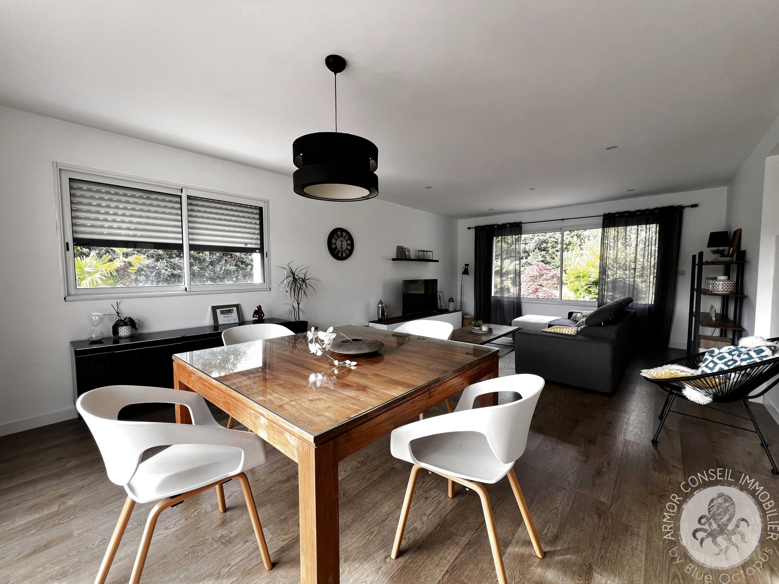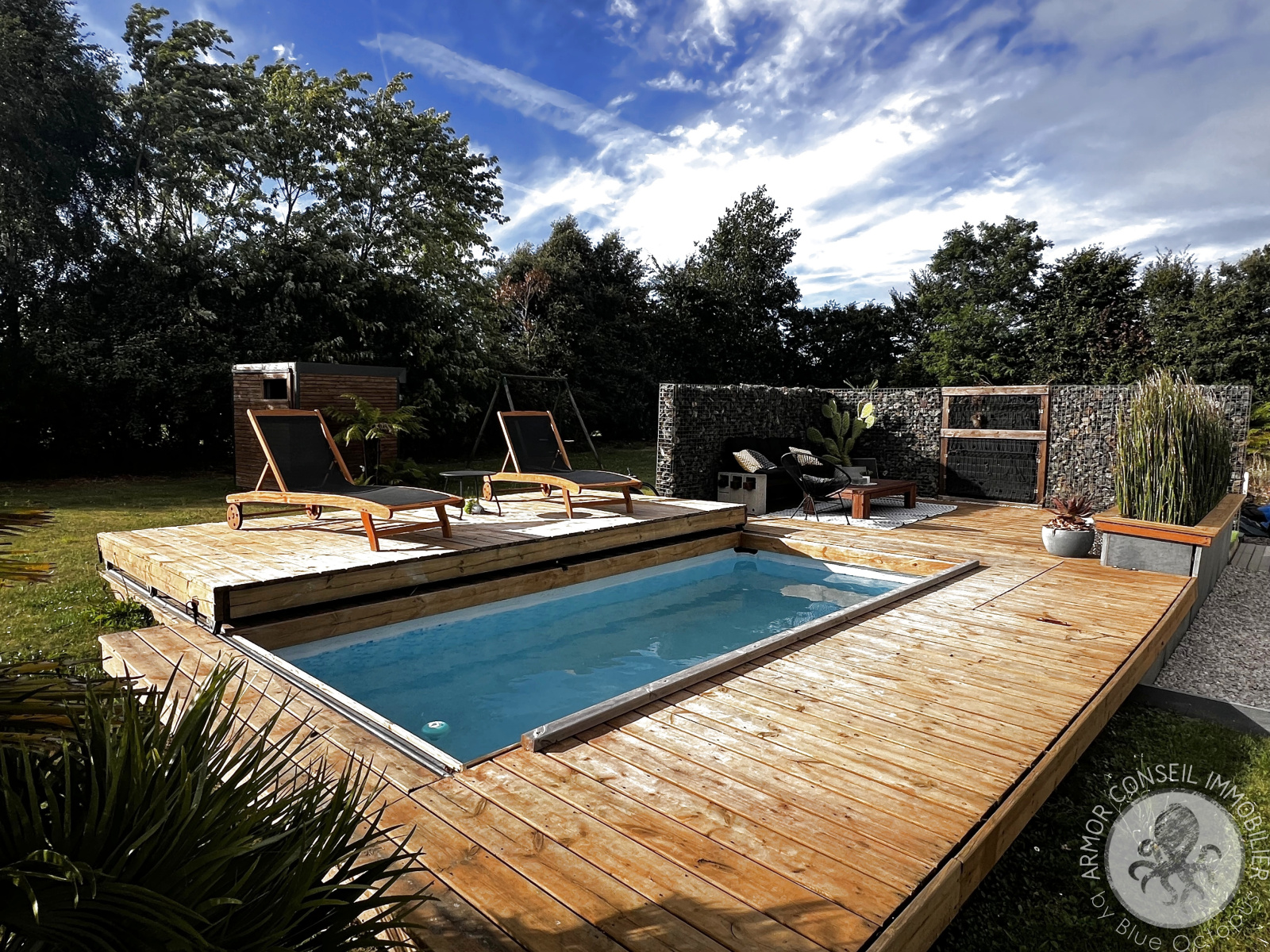 Ruca (22550)ARMOR CONSEIL IMMOBILIER: Située dans un petit hameau, Patricia DIBONNET vous propose de découvrir cette magnifique contemporaine spacieuse et lumineuse offrant une belle surface habitable de 138 m². Exposée Sud-Ouest, elle est composée d'une entrée avec placard, cuisine aménagée et équipée, salon-séjour, quatre chambres dont une au rez-de-chaussée avec salle d'eau privative, une salle de bains, espace mezzanine pour bureau, garage de 40 m², terrasse, piscine chauffée et balcon. Le tout implanté sur un beau terrain aménagé et clôturé d'environ 2 980 m².