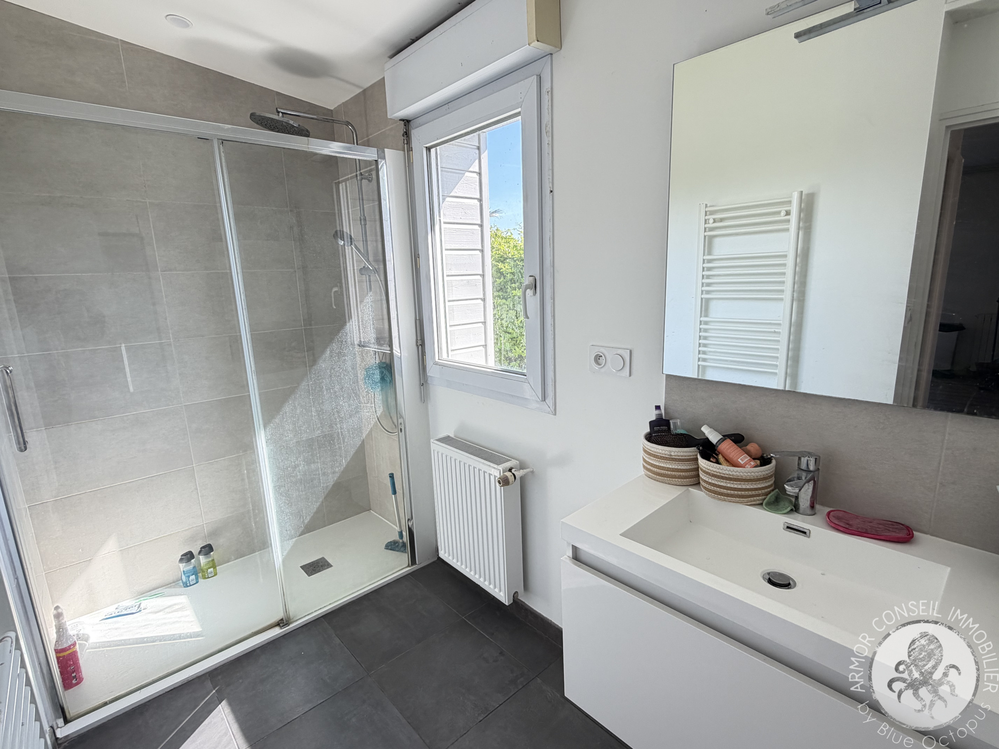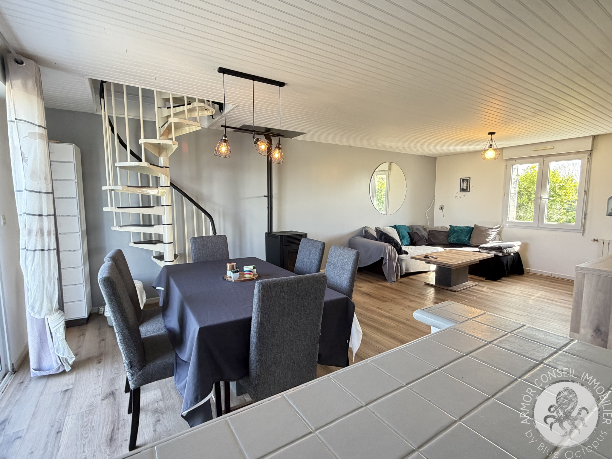 Ruca (22550)ARMOR CONSEIL IMMOBILIER Exclusivité : Patricia DIBONNET vous propose de venir découvrir cette charmante maison de plain-pied, nichée dans un petit hameau paisible, à seulement 12 minutes des Plages de Saint Cast et Fréhel. D'une surface habitable d'environ 95 m², cette maison a été rénovée avec goût, en privilégiant des équipements performants, permettant de réduire la consommation d'énergie. Vous serez séduits dès l'entrée par sa jolie pièce de vie lumineuse, chaleureusement agrémentée d'un poêle à granulés, ouverte sur cuisine aménagée et équipée, idéale pour partager des moments conviviaux, trois chambres, agréable mezzanine à l'étage, WC séparés et buanderie. Côté annexes, vous bénéficierez d'une cave de 20 m², ainsi qu'une remise de jardin offrant des espaces de rangement. Le tout est implanté sur un terrain d'environ 550 m², facile d'entretien et idéal pour profiter des beaux jours en toute sérénité.