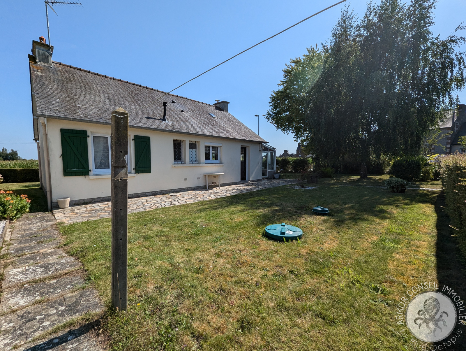 Pluduno (22130)ARMOR CONSEIL IMMOBILIER: Vanessa SAMSON vous propose cette traditionnelle de plain-pied proche de toutes commodités et à seulement 15 minutes des premières plages. Elle se compose d'une cuisine aménagée et équipée, d'une salle à manger séjour avec poêle à bois, d'une agréable véranda orientée Ouest, de 2 chambres avec placard et d'une salle d'eau. Sur un terrain entièrement clos et arboré de 572 m², elle dispose également d'un garage, d'un appentis ainsi que d'un puits. Vous pouvez consulter les risques auxquels ce bien est exposé sur "www.georisques.gouv.fr"
