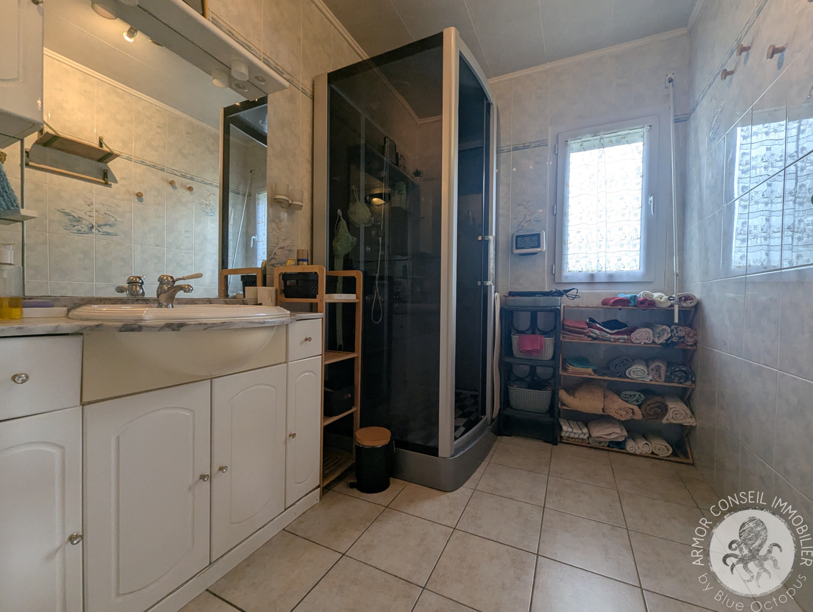 ARMOR CONSEIL IMMOBILIER - Vanessa SAMSON aura le plaisir de vous faire découvrir ce bien construit en 2007, situé au calme, proche du centre bourg, des écoles et des commodités. A seulement 15 minutes de la côte, cette traditionnelle vous accueille par sa pièce de vie avec un coin cuisine et un poêle à bois, une chambre, une salle d'eau et une buanderie. A l'étage 2 chambres spacieuses dont une avec placard. Un terrain entièrement clos et arboré de 636m². A VISITER SANS TARDER!!