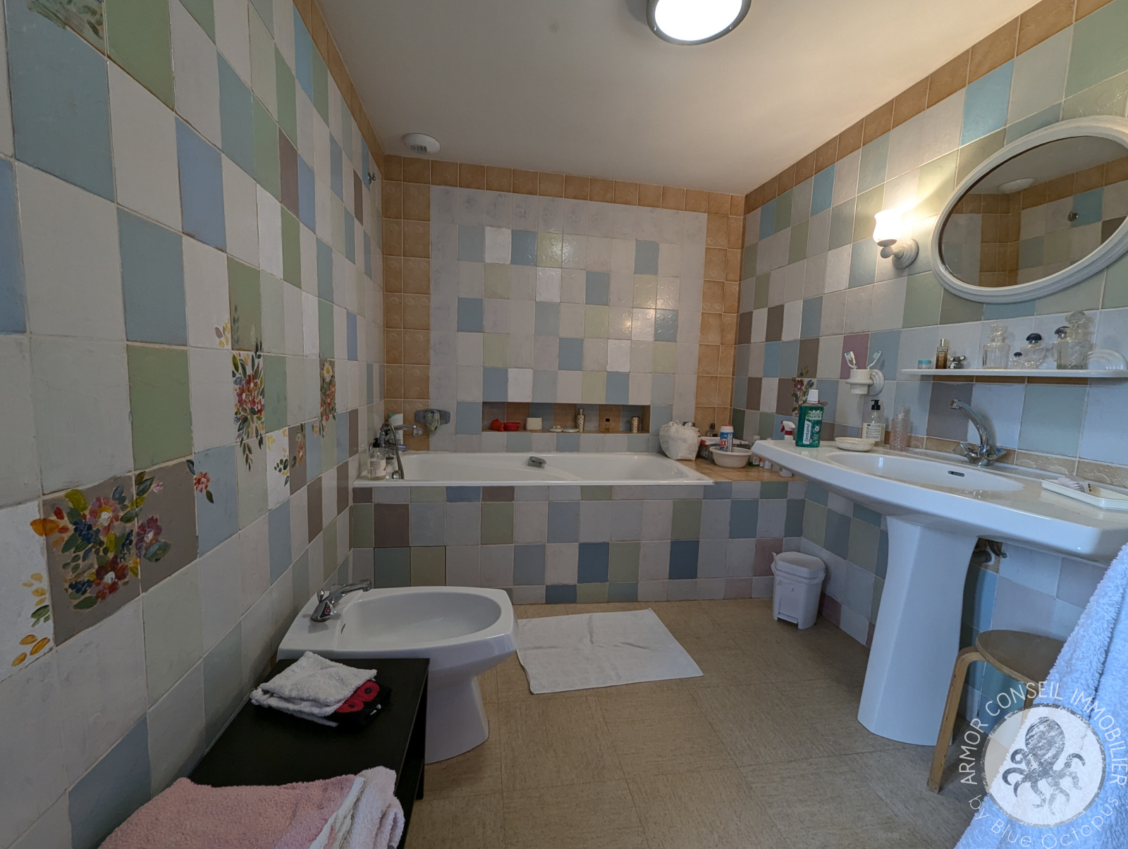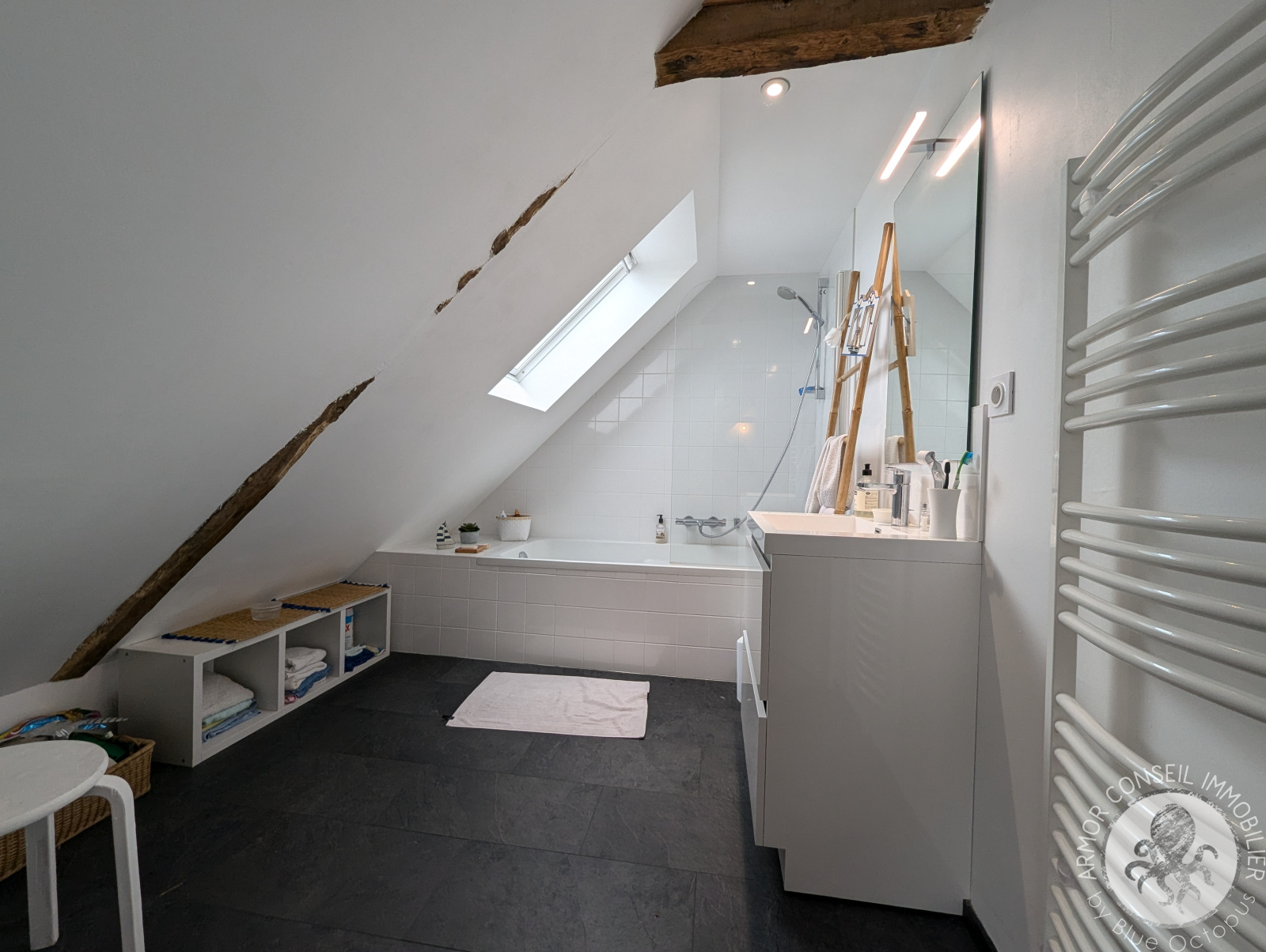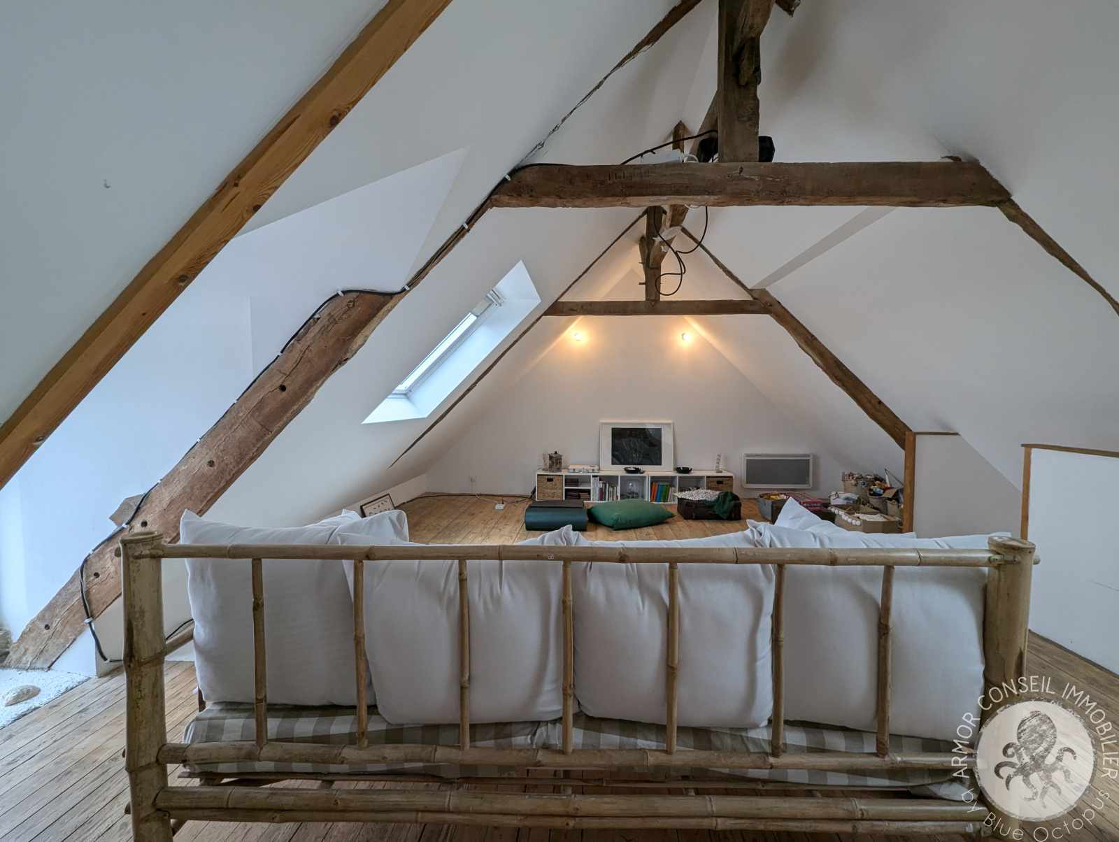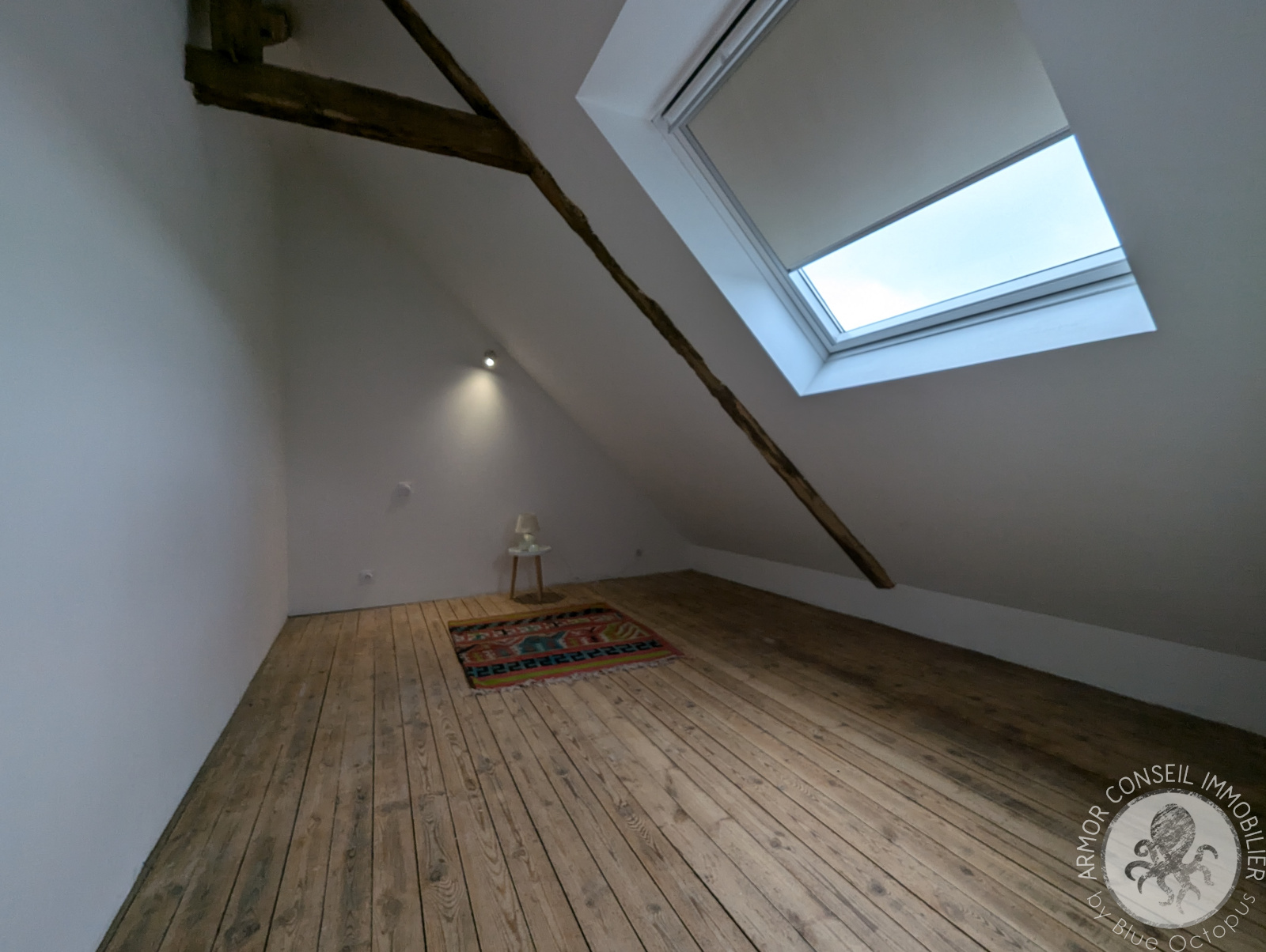 Pluduno (22130)ARMOR CONSEIL IMMOBILIER: Vanessa SAMSON vous présente ce bien idéalement situé à seulement 15 minutes des premières plages, 5 minutes de PLANCOET , à deux pas des écoles et des commodités. Cette charmante maison de centre bourg vous offre une entrée avec placards, une cuisine aménagée et équipée, une arrière-cuisine, un salon salle à manger au rez-de-chaussée. Au premier, un couloir desservant un bureau avec placard, 3 chambres et une salle de bains. Une vaste et lumineuse mezzanine sur parquet bois avec une chambre et une salle de bains au second. Une courette plein sud, un garage, une petite dépendance et un puits. Le tout sur 160m² de terrain.