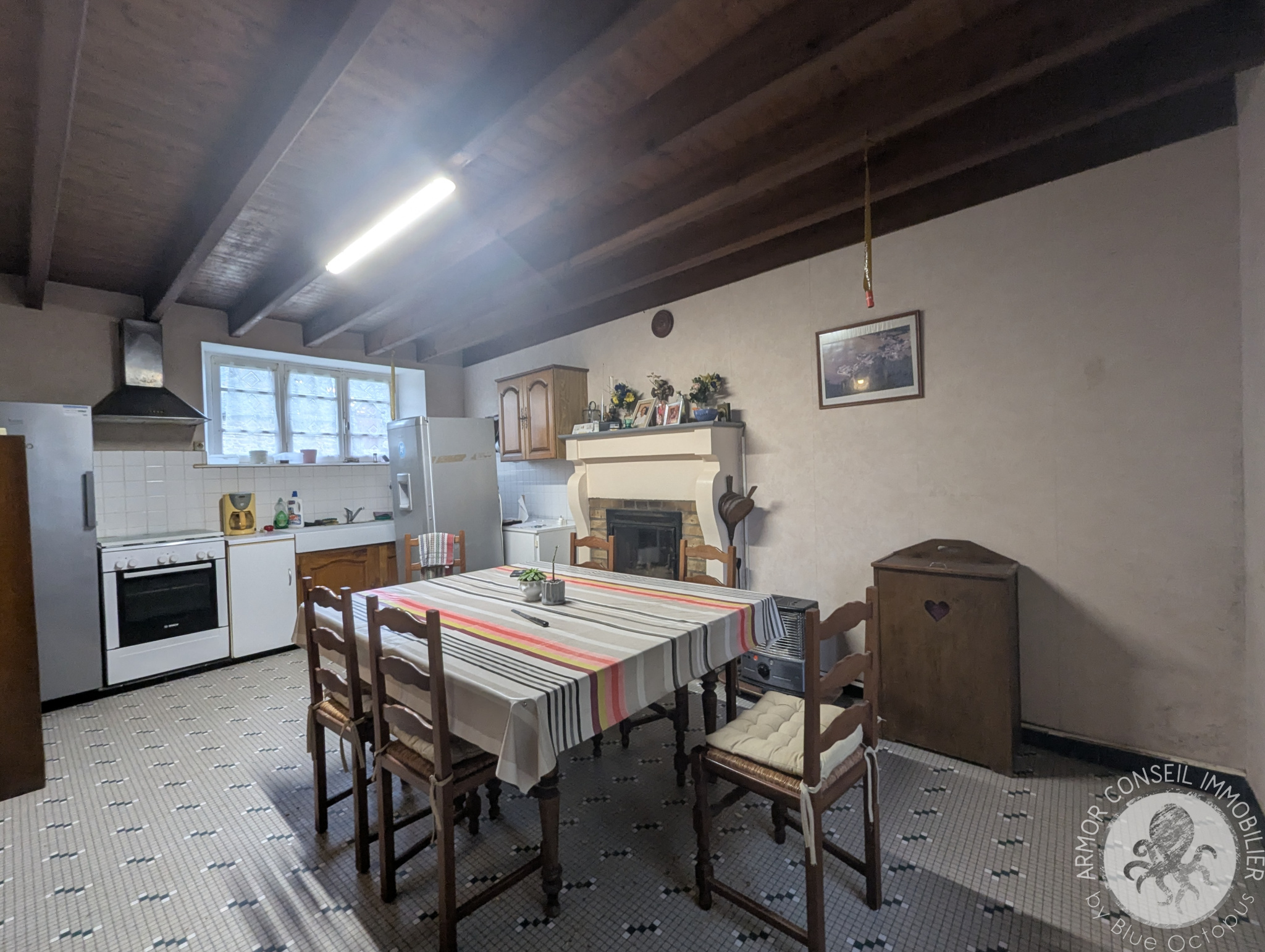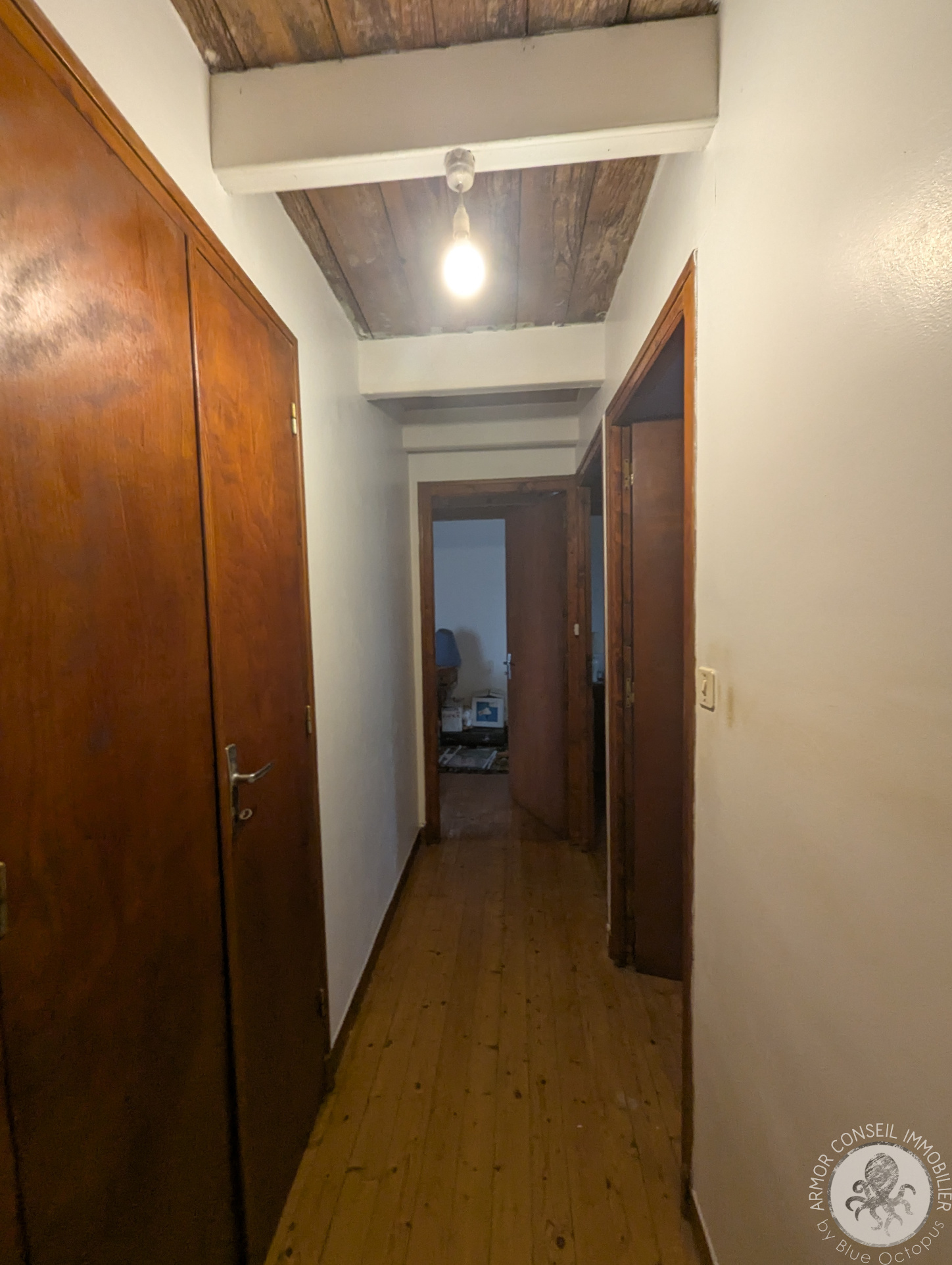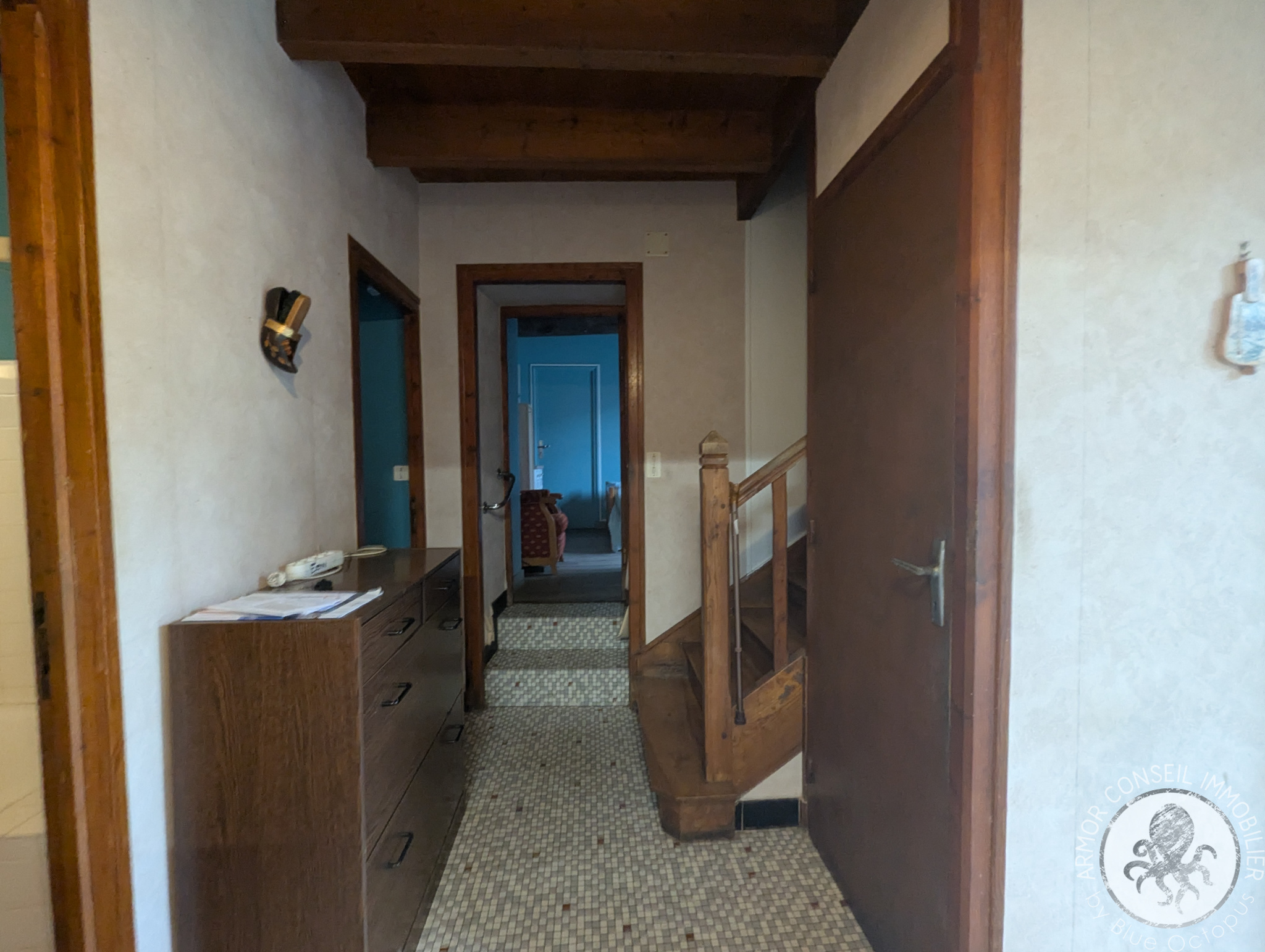 Il se compose d'une entrée, une pièce de vie avec coin cuisine et cheminée insert, une salle de bains ainsi qu'une chambre de rez-de-chaussée. A l'étage, un palier avec placard dessert 3 chambres et avec un grenier aménageable au-dessus.