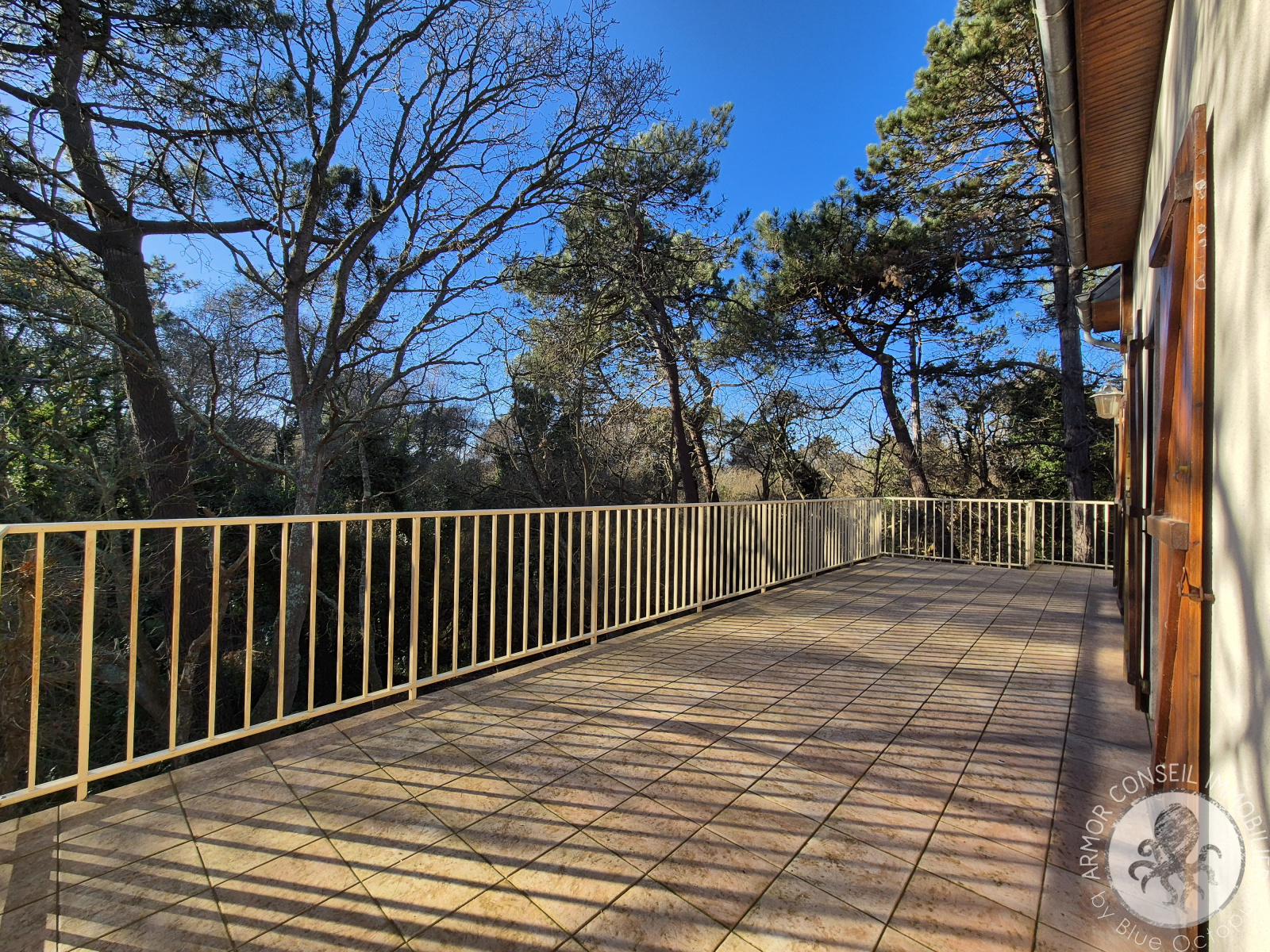 La pièce de vie offre plusieurs accès à une grande terrasse exposée sud-ouest, avec une belle vue sur la nature.
