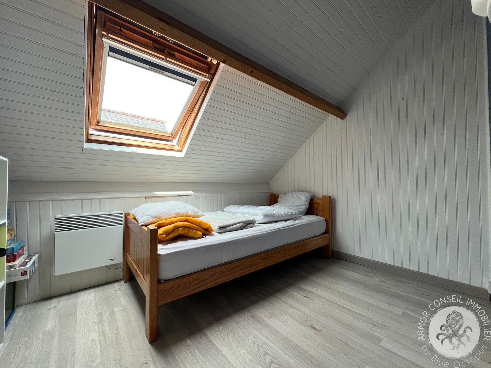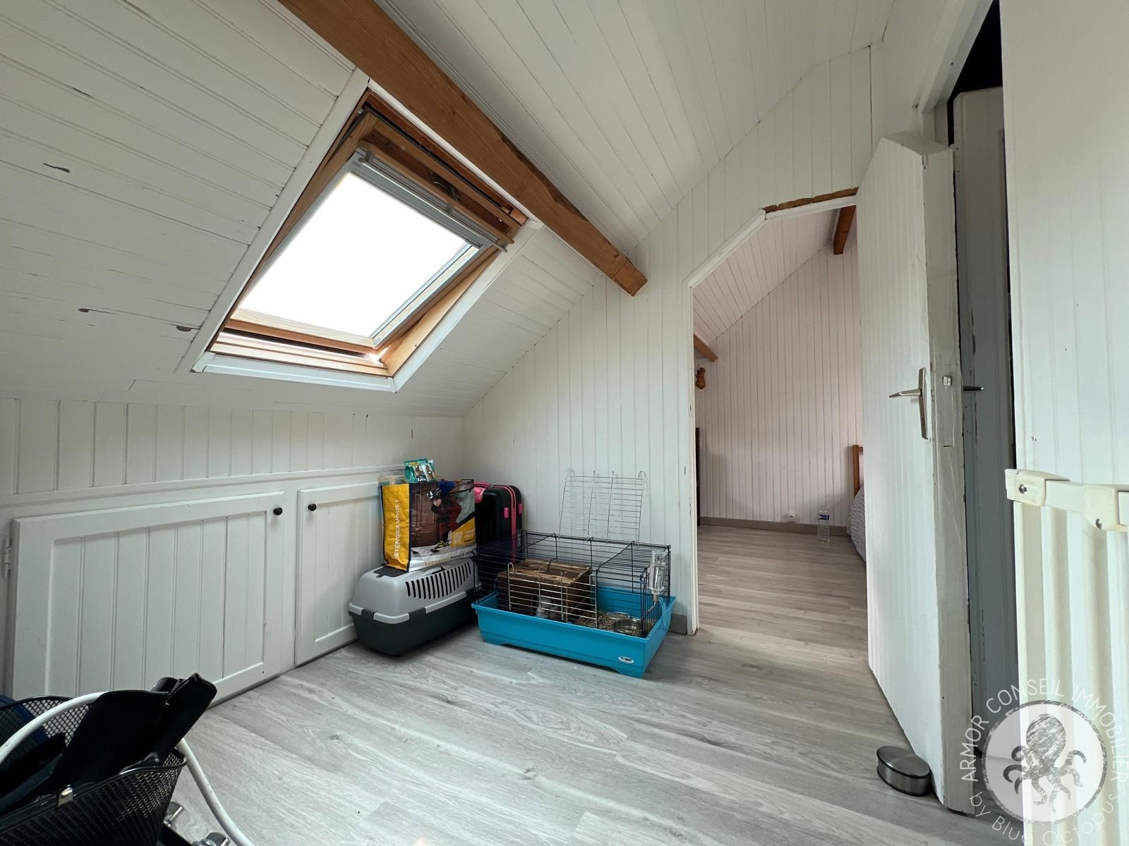 A l'étage, un palier desservant deux chambres.