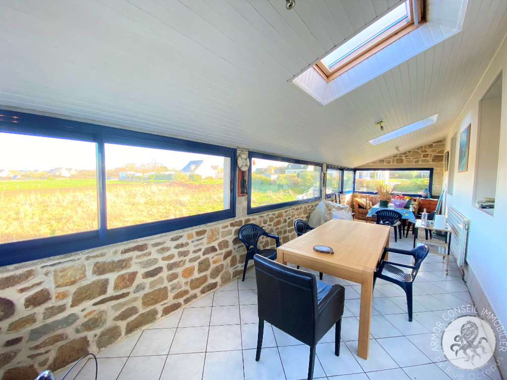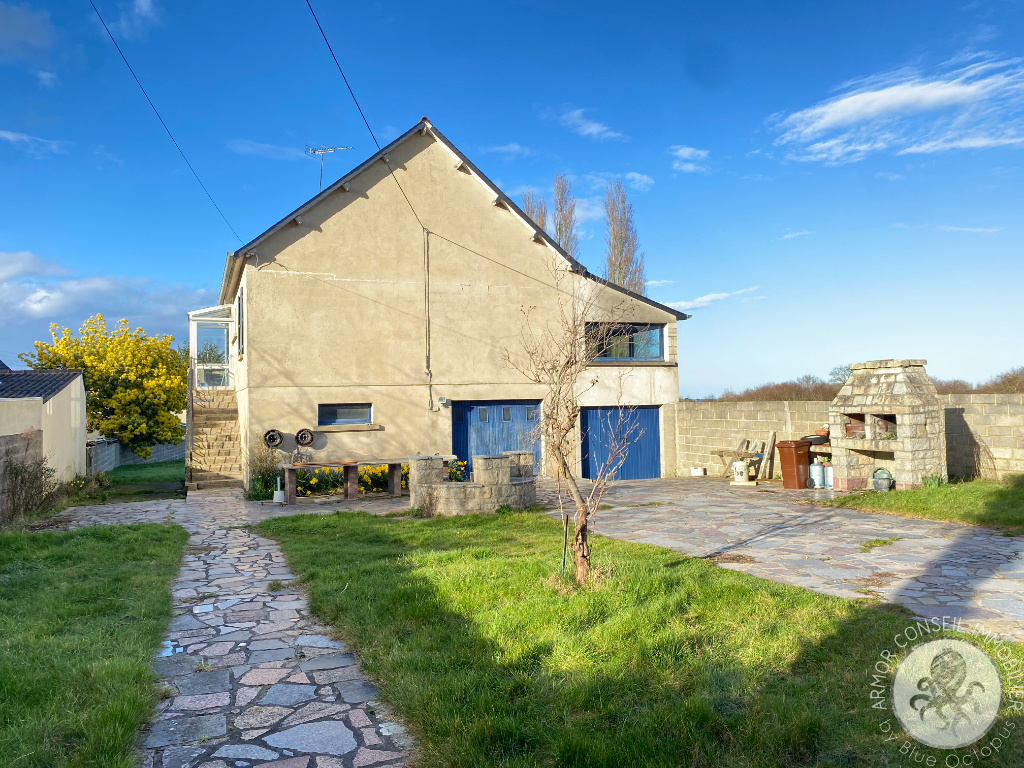 EXCLUSIVITE : VENDU PAR L'AGENCE ARMOR CONSEIL IMMOBILIER Une maison sur sous-sol total construite en parpaings et couverte en ardoises comprenant une cuisine aménagée, un salon avec cheminée, une véranda, deux chambres, une salle d'eau et un wc. A l'étage, palier desservant deux chambres. Garage et atelier. Le tout sur un terrain de 1 369m².