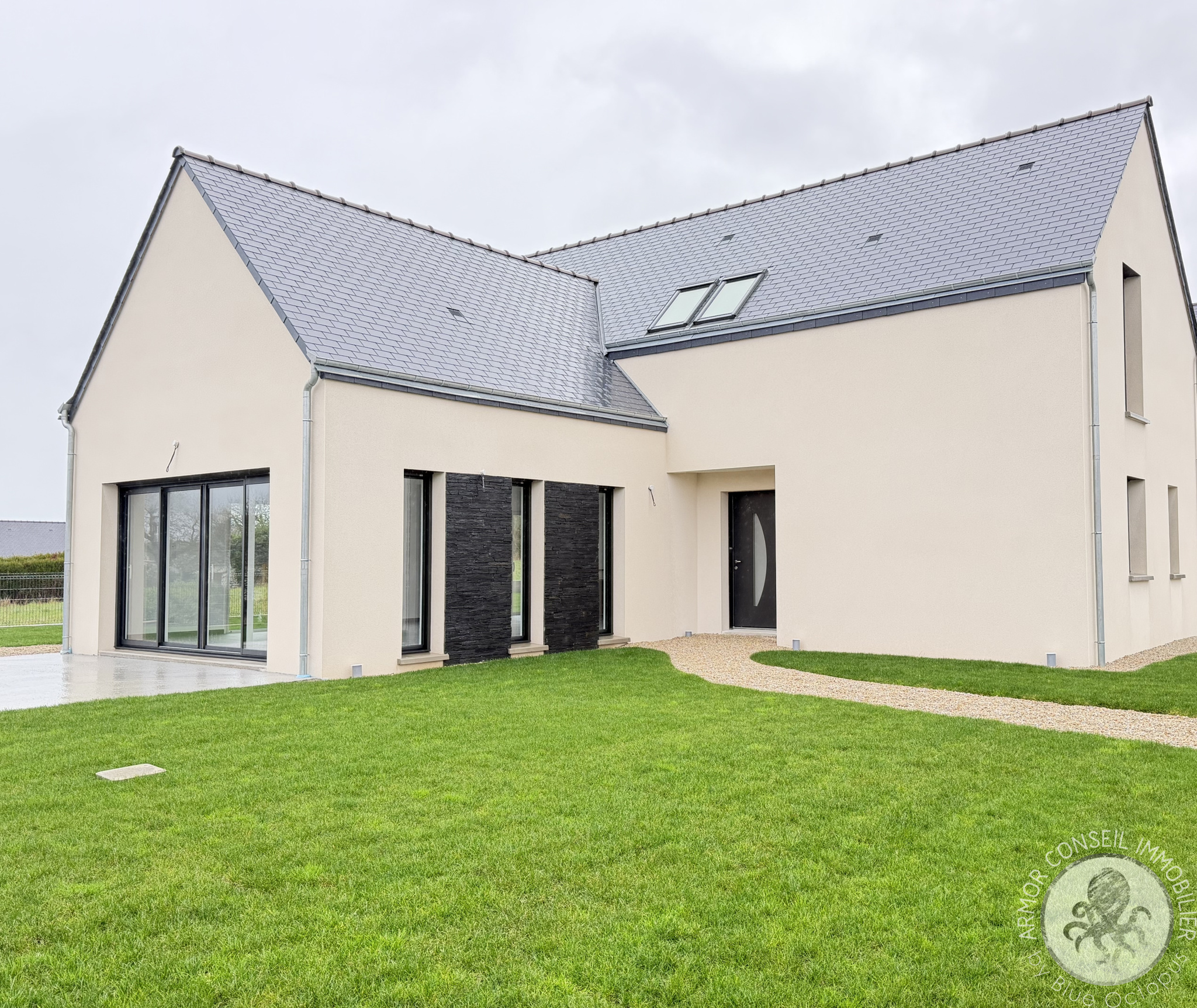 Plévenon (22240)ARMOR CONSEIL IMMOBILIER : Avantage rare : Frais de notaire réduits à 10 180 € ! Patricia DIBONNET vous propose de venir découvrir cette très belle maison Neuve de 2025, idéalement située à seulement 1 km de la plage, à deux pas des petits commerces, et à proximité des sentiers de randonnée. D'une surface habitable de 141 m², cette maison spacieuse et lumineuse vous séduira par ses volumes généreux et ses prestations modernes et de qualité. Elle offre au rez-de-chaussée: une entrée accueillante ouvrant sur une grande pièce de vie de 55 m² baignée de lumière avec cuisine aménagée et équipée. Vous profiterez également d'une suite parentale avec chambre, dressing et salle d'eau privative, WC. A l'étage : l'espace nuit offre une mezzanine, deux belles chambres, salle de bains et WC, parfaits pour le confort de toute la famille. Un garage vient compléter ce bien, édifié sur un terrain de 560 m². Maison clé en mains, alliant modernité, confort et emplacement recherché !