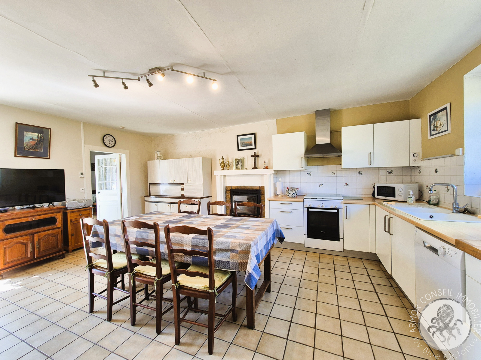 La maison principale offre une surface habitable d’environ 103 m². Elle se compose d’un salon/séjour lumineux, d’une cuisine équipée, d’une salle d’eau, de WC indépendants et de trois chambres. Les combles, actuellement non aménagés, offrent un beau potentiel d’agrandissement de plus de 140 m² !