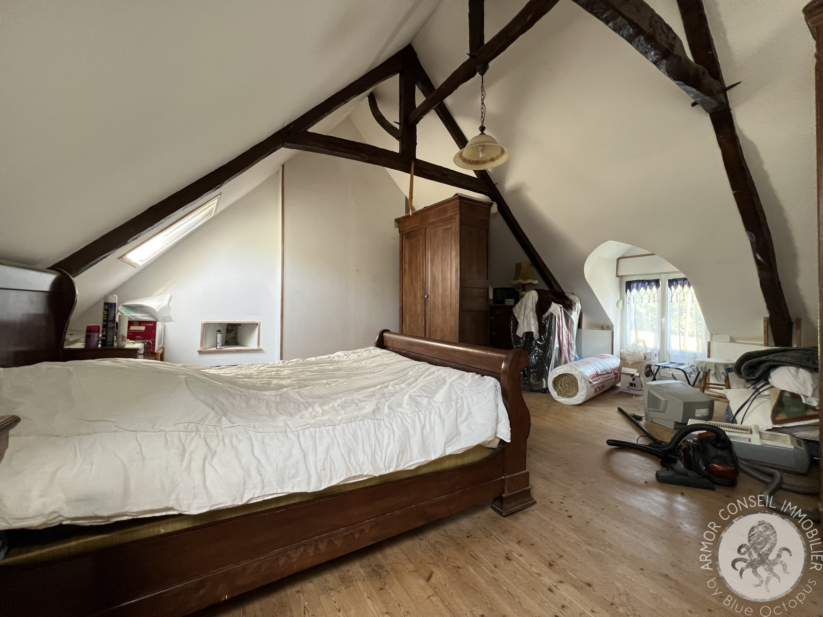 A l’étage, une grande chambre.